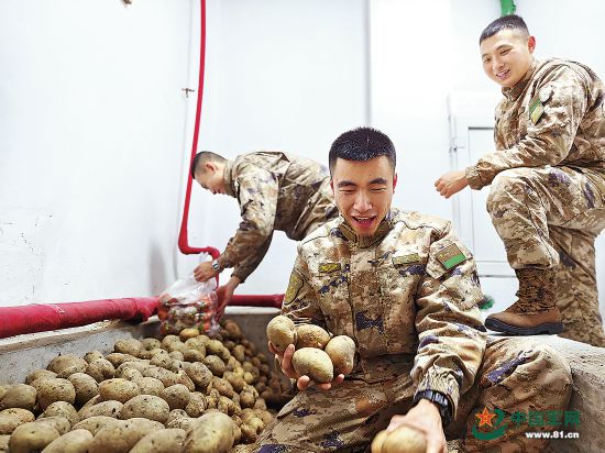 战士们在菜窖整理连队送来的冬菜。王冠铭、黄泓源摄